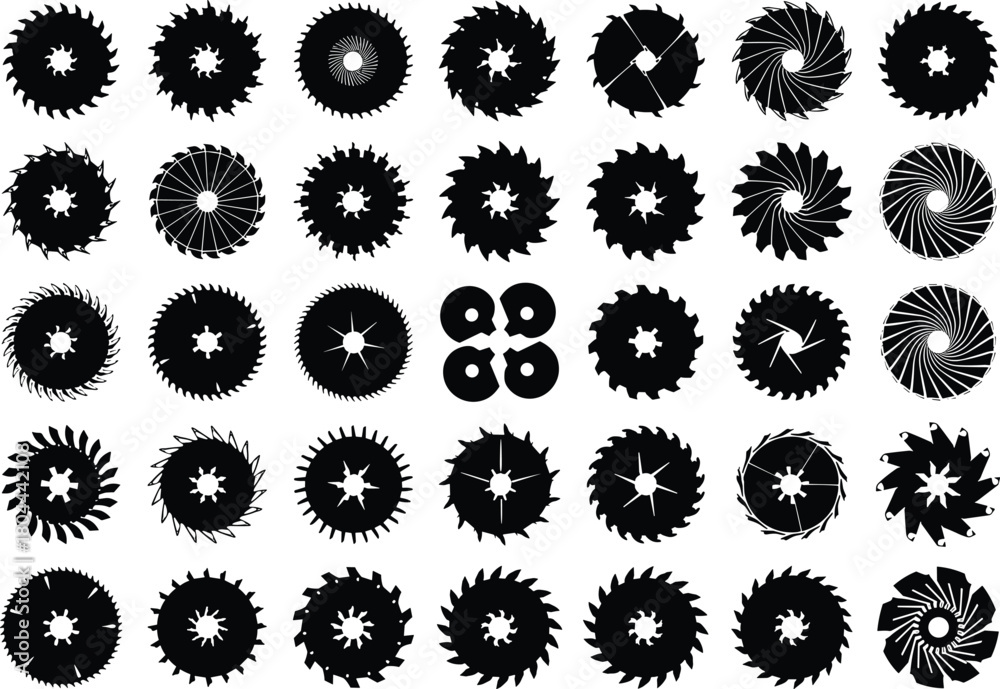 Tableau sur toile Collection of Circular Saw Blade Silhouettes,Diverse Designs for Woodworking, Co