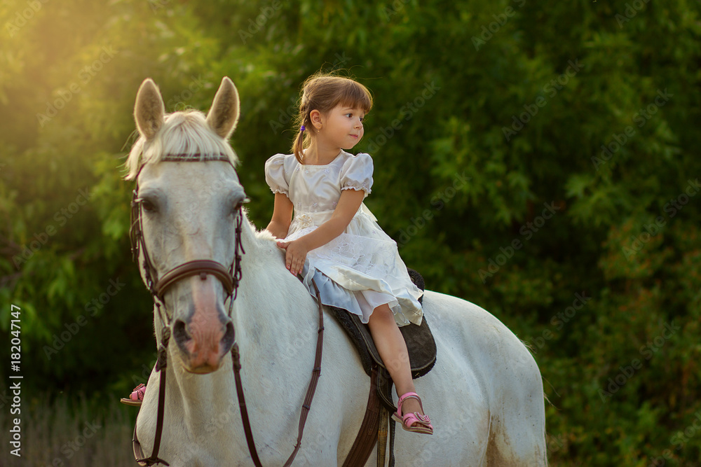 Tableau sur toile the little girl sits on a horse astride