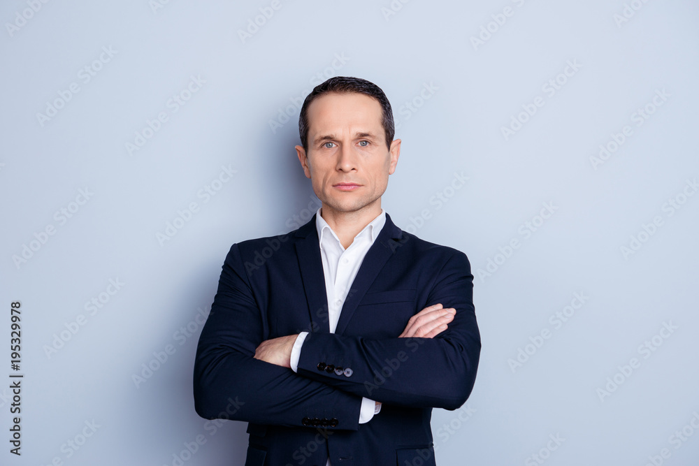 Tableau sur toile Portrait of thoughtful, concentrated, caucasian man in formalwear, having his ar