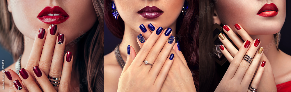 Tableau sur toile Beautiful woman with different make-up and manicure