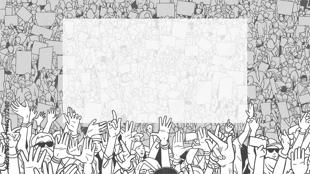 Tableau sur toile Illustration of detailed crowd protest demonstration with large blank banner