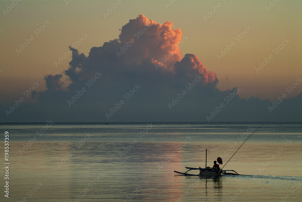 Tableau sur toile Balinese Fisherman Sails Out To Sea