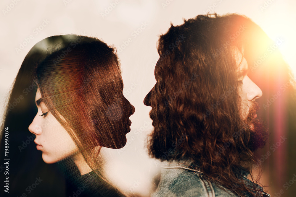 Tableau sur toile Man and woman. Relationships concept. Multiple exposure.