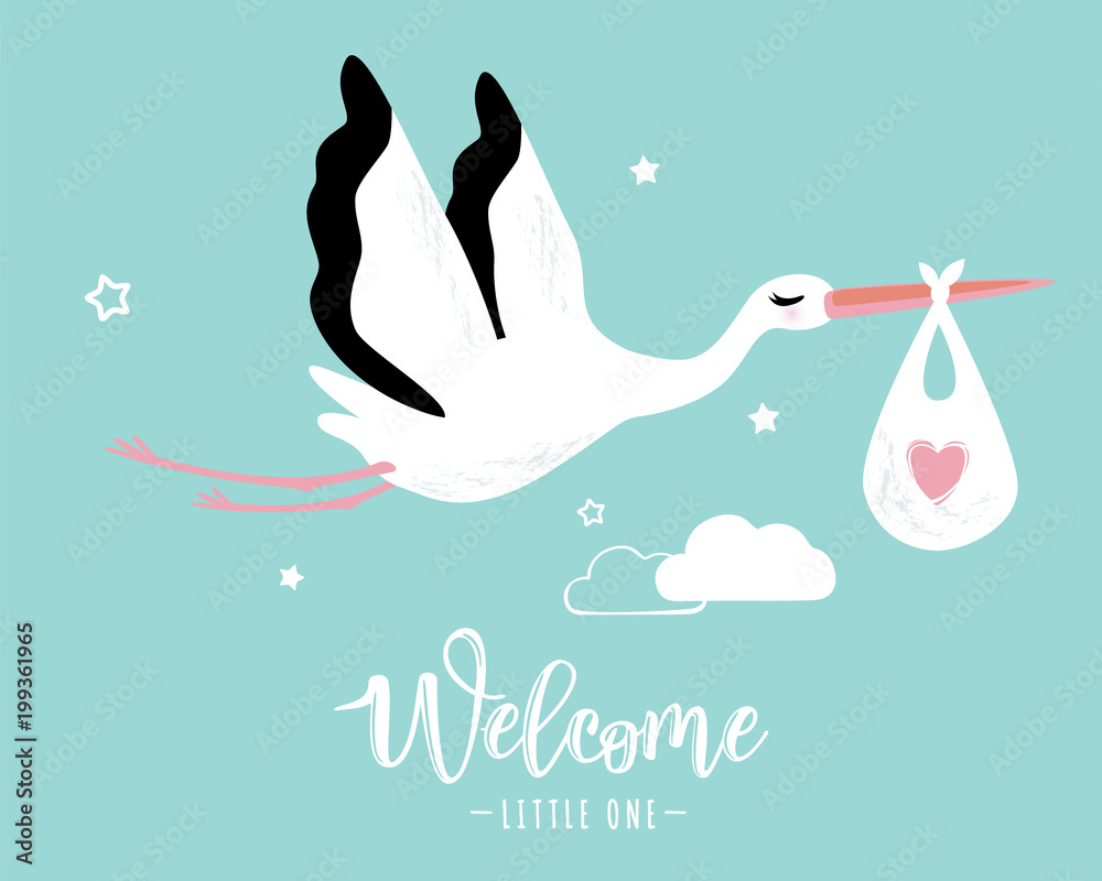 Tableau sur toile Vector illustration of a baby shower Invitation with stork