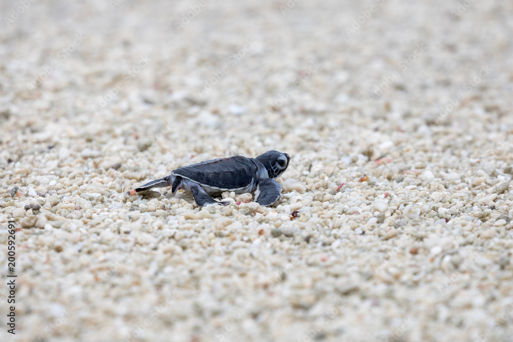Tableau sur toile Turtle hatchling going to the ocean on a sandy beach in Queensland Australia