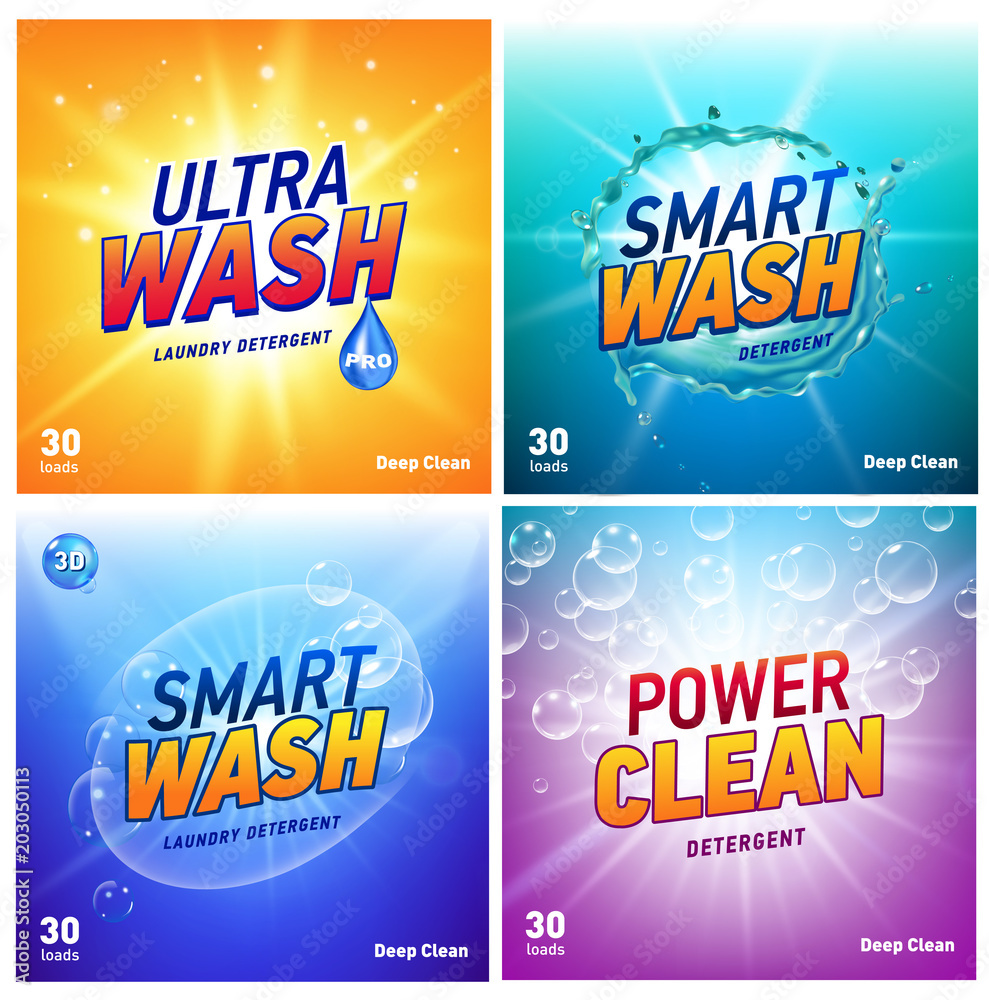 Tableau sur toile creative laundry detergent concept packaging design template set