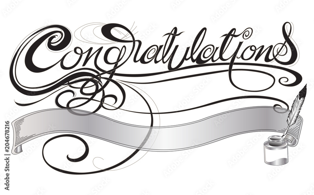 Tableau sur toile Congratulations with quill pen and ink sign or card design gray scale