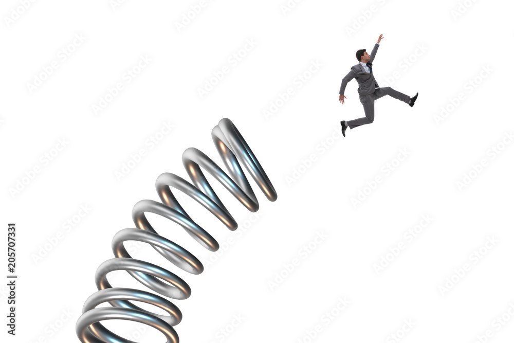 Tableau sur toile Businessman jumping from spring in promotion concept