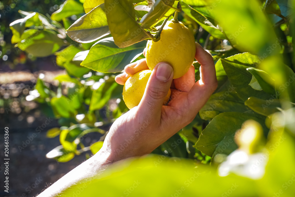 Tableau sur toile Zitrone pflücken im Frühling close up