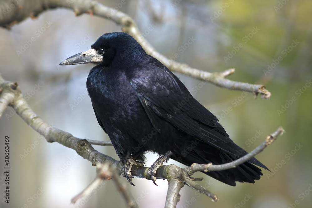 Tableau sur toile rook ( Corvus frugilegus) sitting on a branch