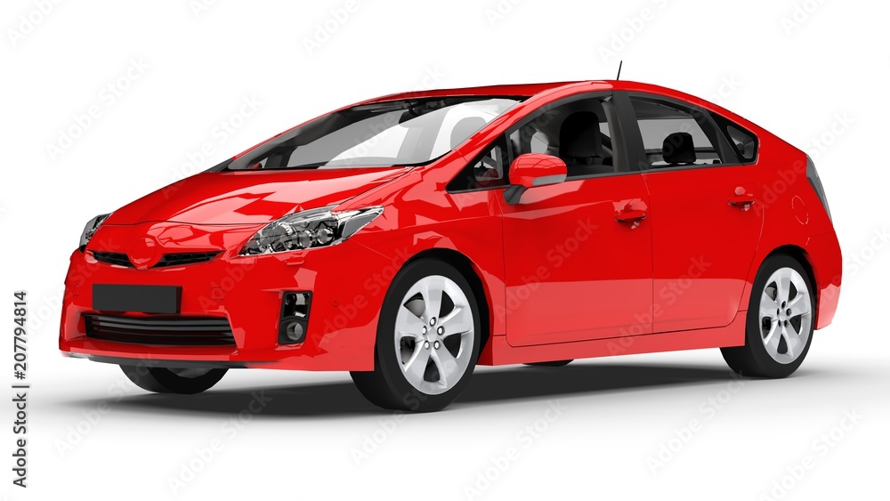 Tableau sur toile Modern family hybrid car red on a white background with a shadow on the ground