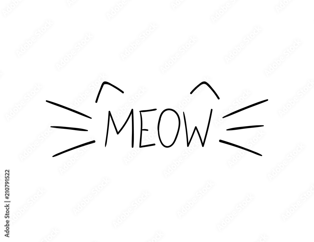 Tableau sur toile Vector Doodle Meow Illustration, Cat Whiskers Hand Drawn Illustration