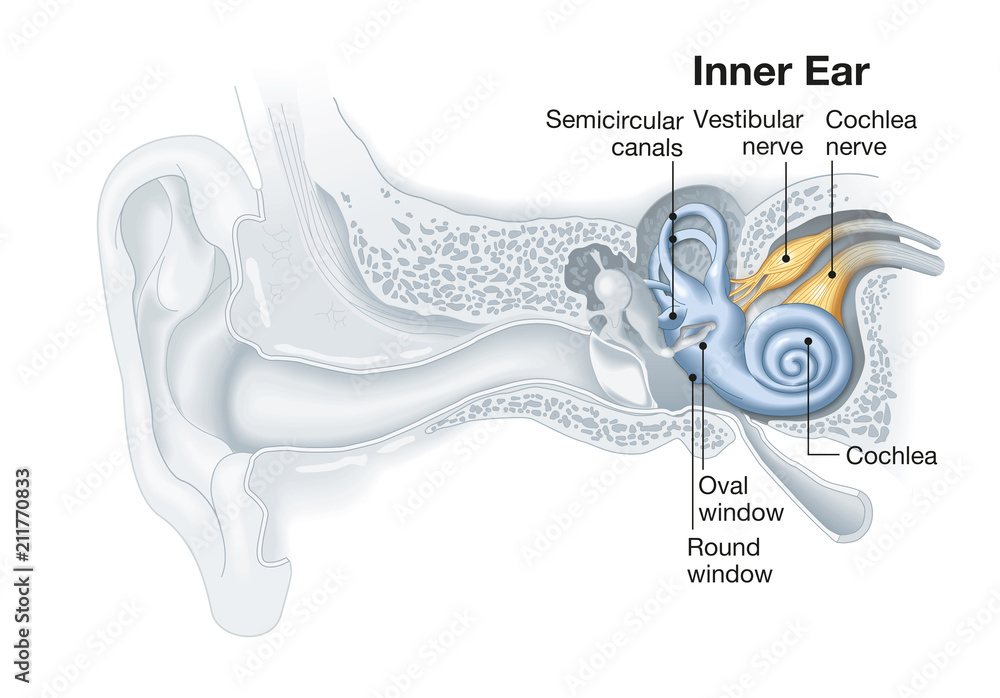Tableau sur toile Inner ear anatomy, medical illustration with caption