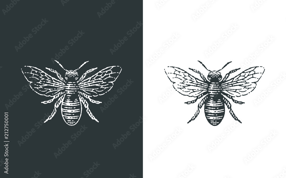 Tableau sur toile Honey bee logo. Hand drawn engraving style illustrations.