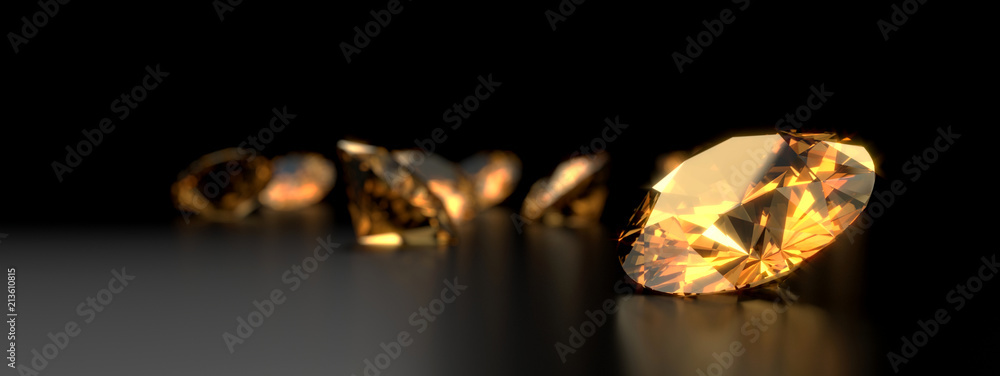 Tableau sur toile Round diamond topaz Gem reflected placed on dark reflection background