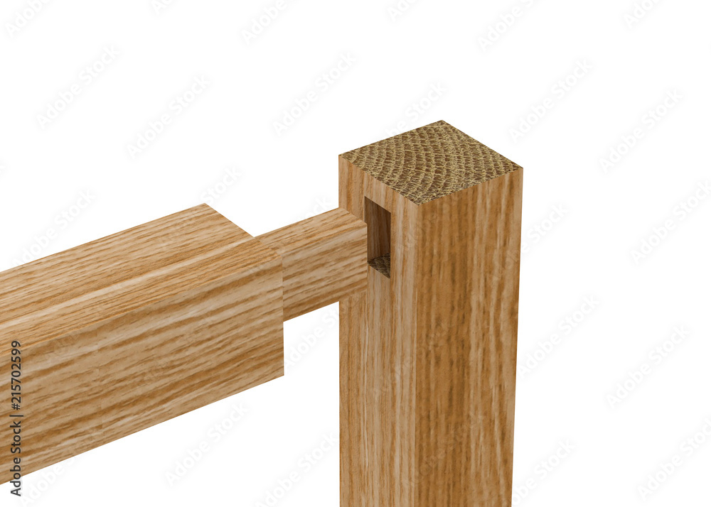 Tableau sur toile 3D realistic render of boards with woodworking tenon inserted into a mortis