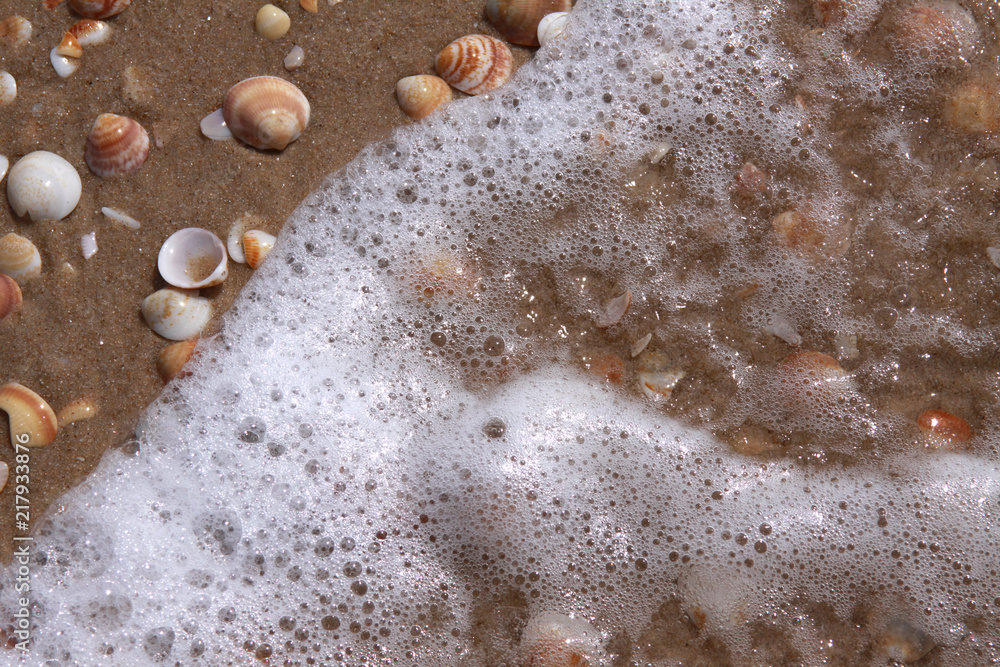 Tableau sur toile Sea wave and cockleshells