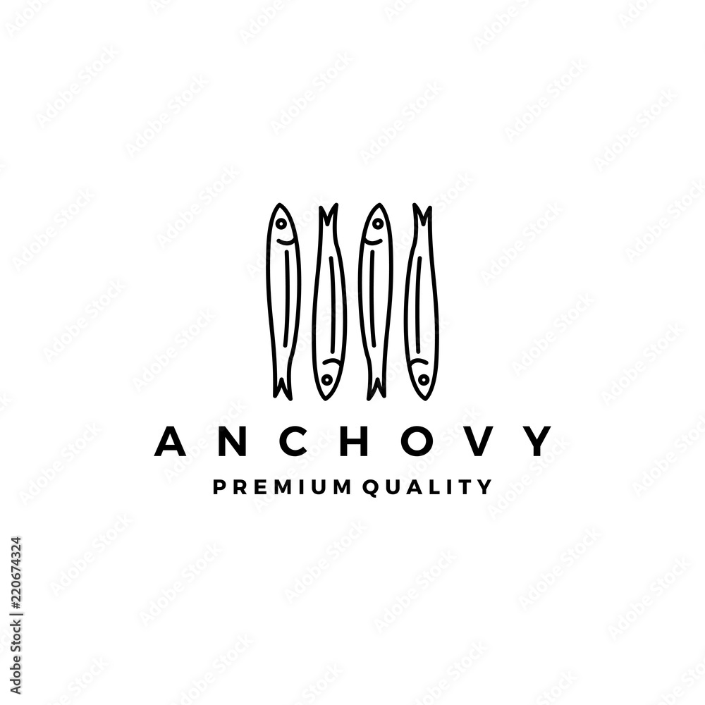 Tableau sur toile anchovy fish logo vector icon seafood illustration
