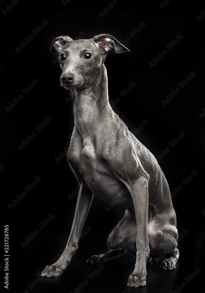 Tableau sur toile Italian greyhound Dog Isolated on Black Background in studio