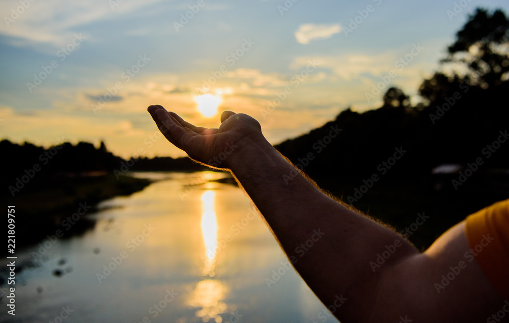 Tableau sur toile Capture moment to admire sunset nature beauty