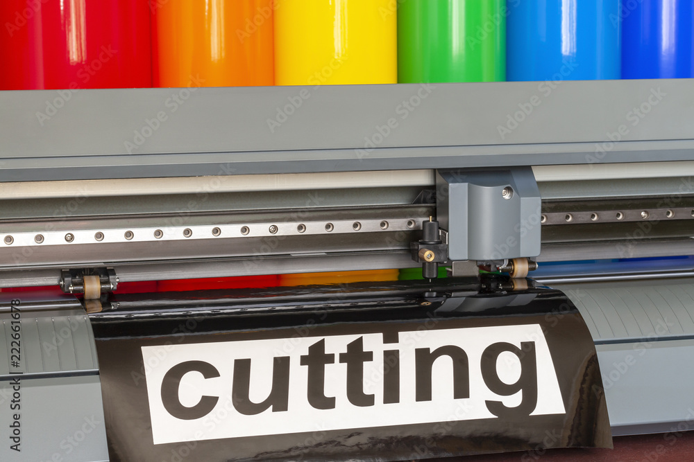 Tableau sur toile Cutting plotter close-up. The process of cutting a vinyl film.