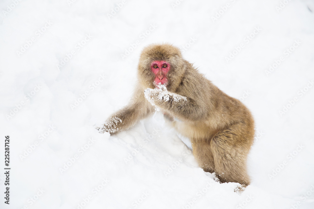 Tableau sur toile animals, nature and wildlife concept - japanese macaque searching and eating foo
