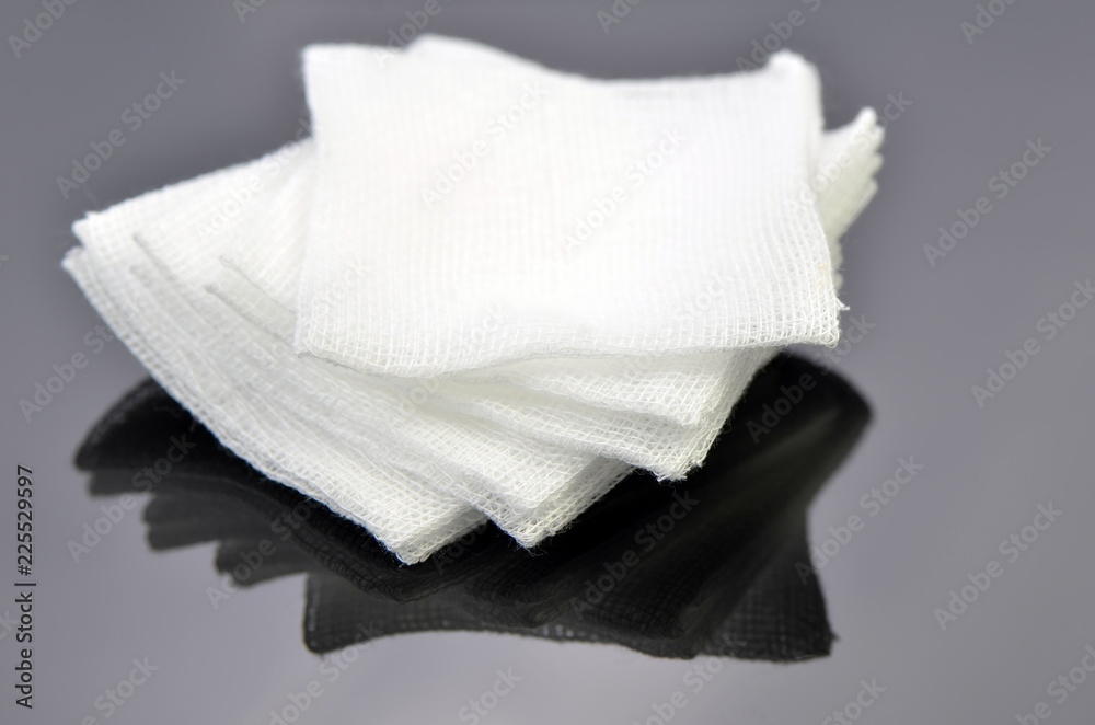Tableau sur toile Stack of sterile gauze pad on dark background.