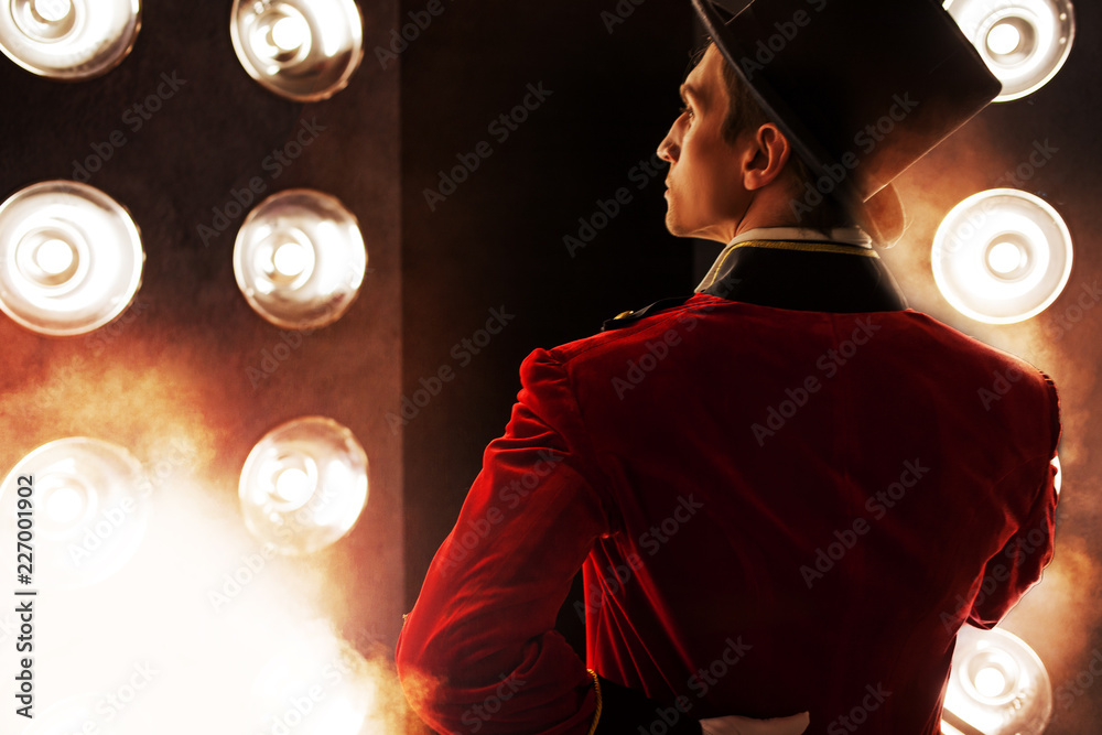 Tableau sur toile Showman. Young male entertainer, presenter or actor on stage.