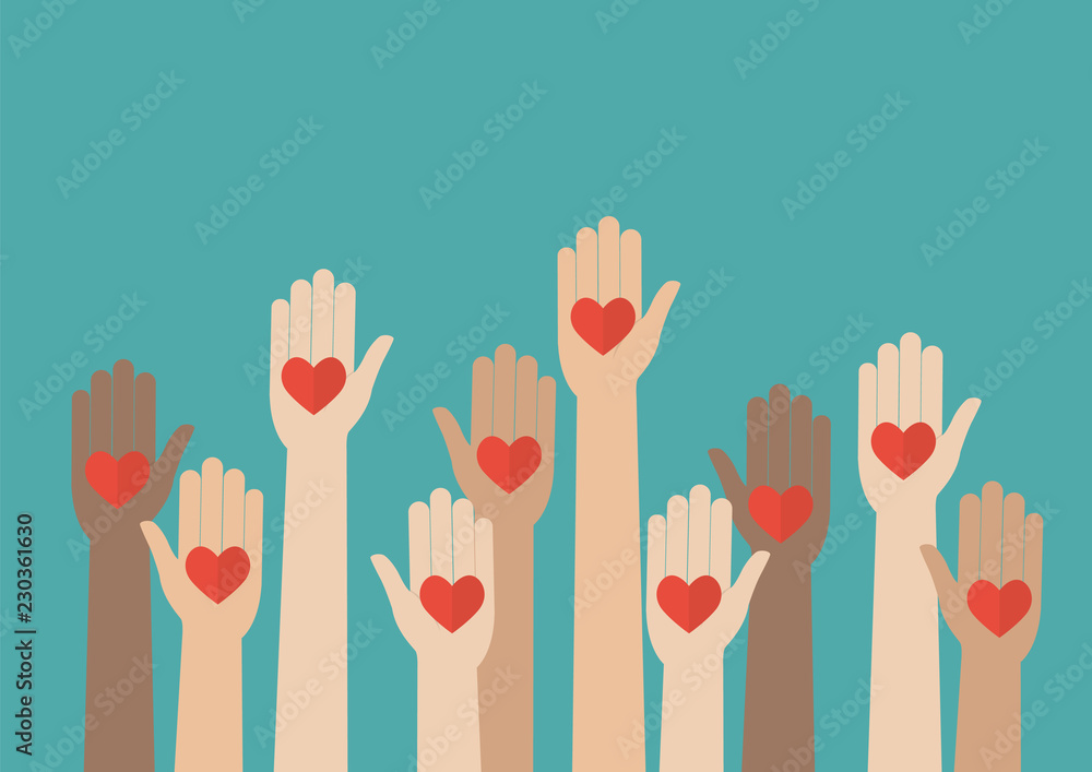 Tableau sur toile Raised hands volunteering