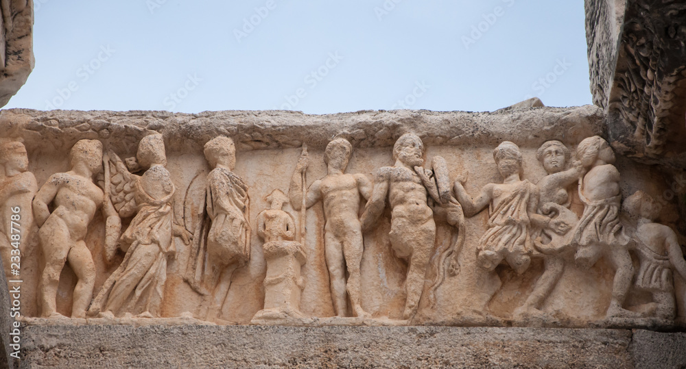 Tableau sur toile Relief statues on the frieze from Ephesus ancient city, Turkey
