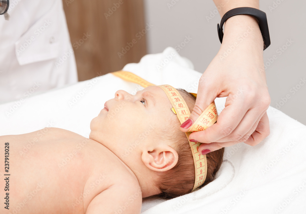 Tableau sur toile Infant medical exam - doctor checking head size with a measurement tape