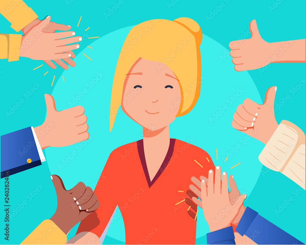 Tableau sur toile Happy woman portrait with thumbs up and human hands clapping isolated on background