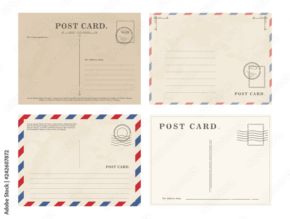 Tableau sur toile Composed graphic set of various postcards with blank writing area on white backg