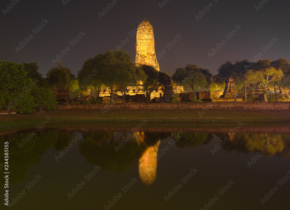 Tableau sur toile Wat Phra Ram Temple at night in Ayuthaya