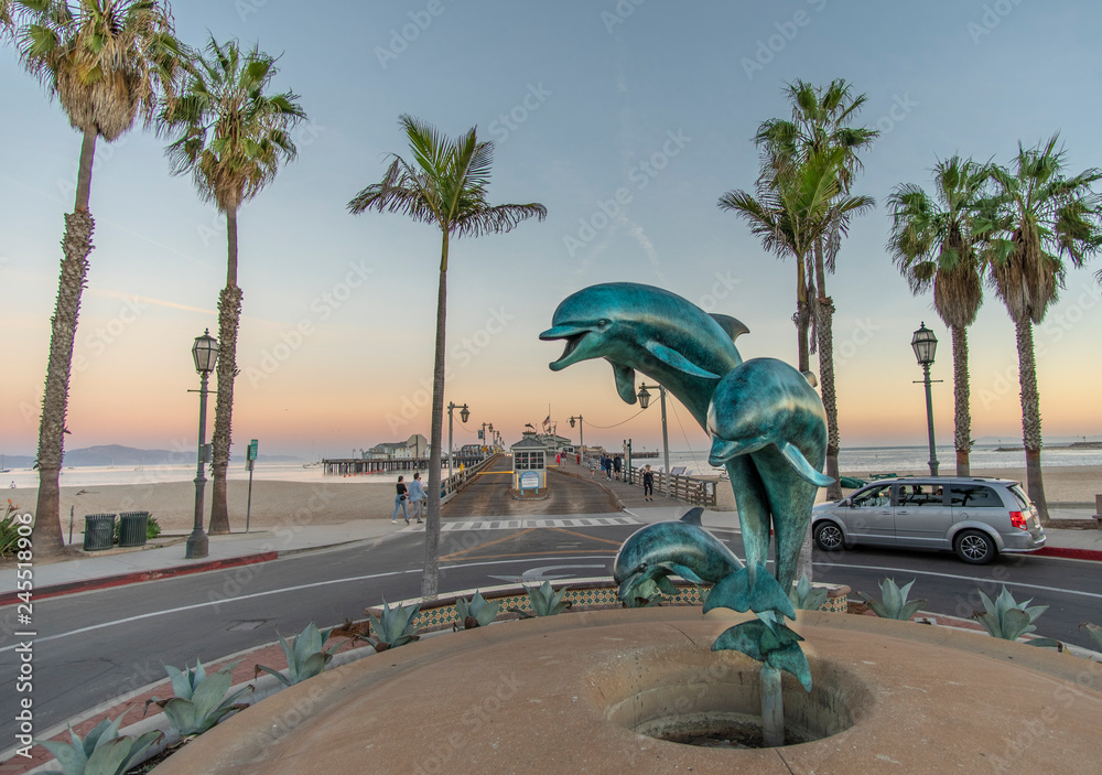 Tableau sur toile Dolphin Fountain at Stearns Wharf