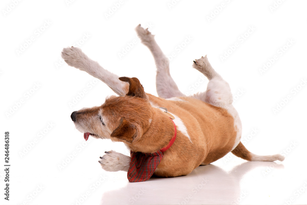 Tableau sur toile An old, adorable Jack Russell terrier getting up