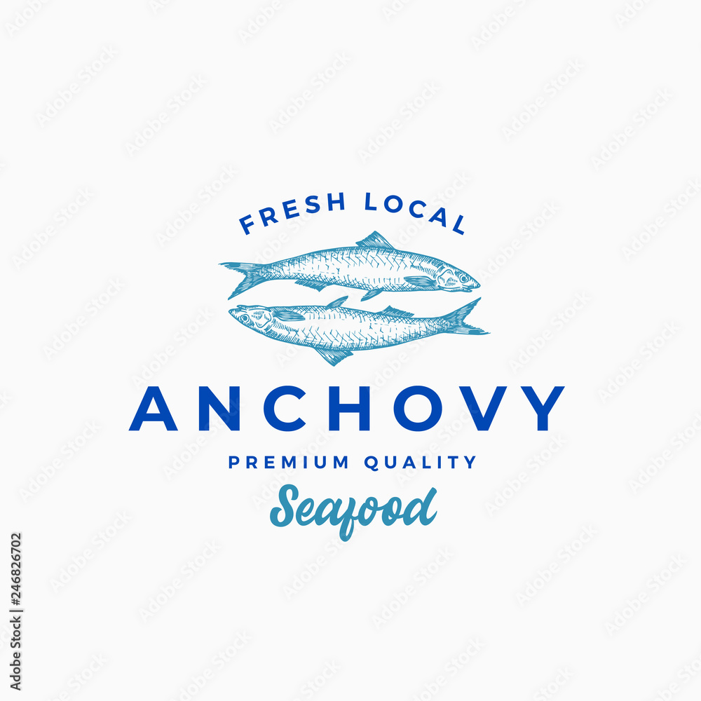 Tableau sur toile Fresh Local Anchovy Abstract Vector Sign, Symbol or Logo Template