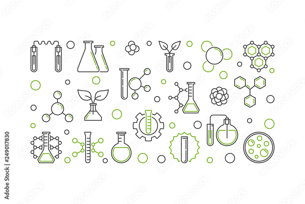 Tableau sur toile Chemistry vector concept linear illustration or horizontal banner on white backg