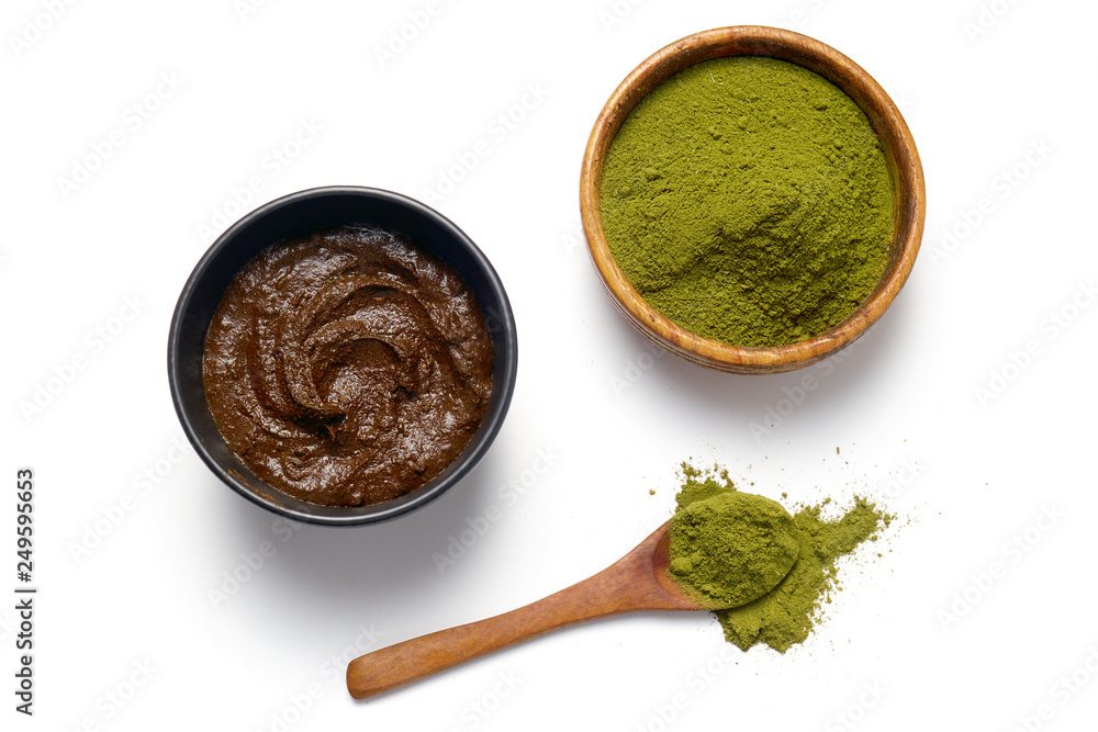 Tableau sur toile Herbal Henna powder and henna paste on white background.