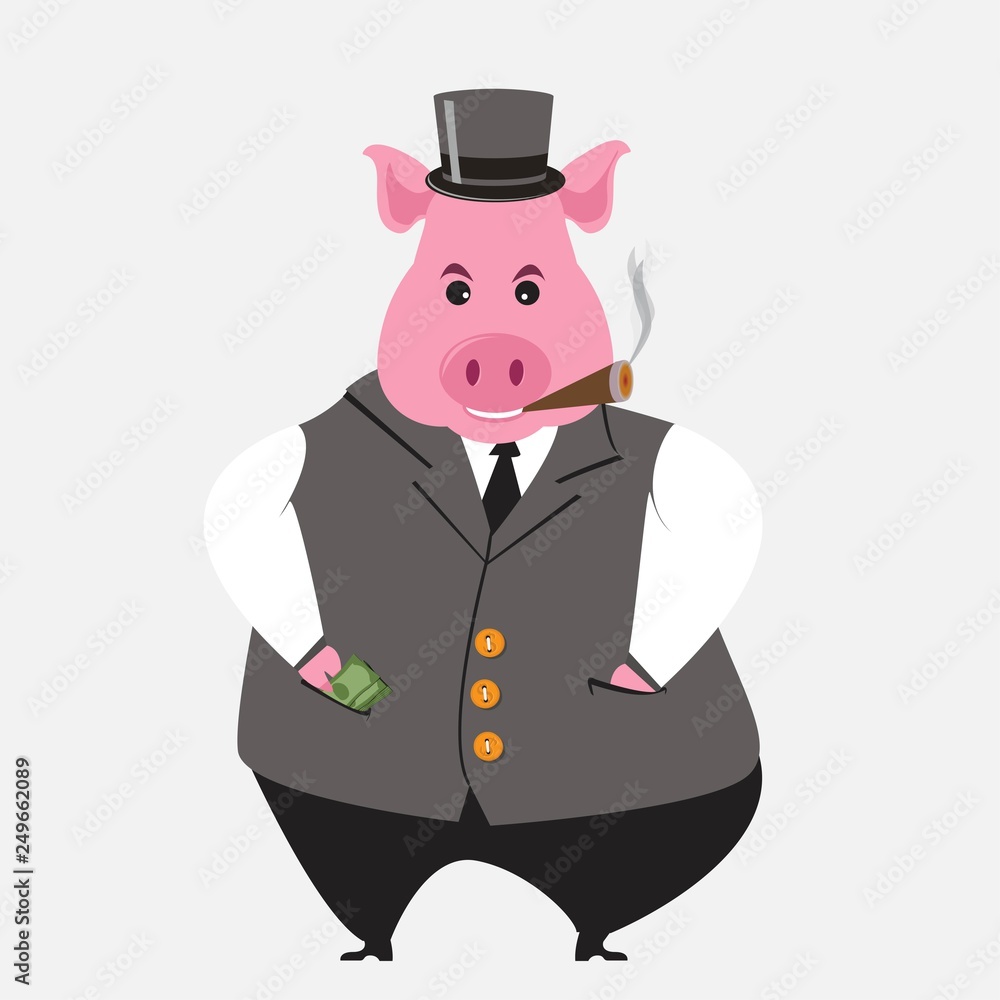 Tableau sur toile Funny cartoon capitalist pig caricature