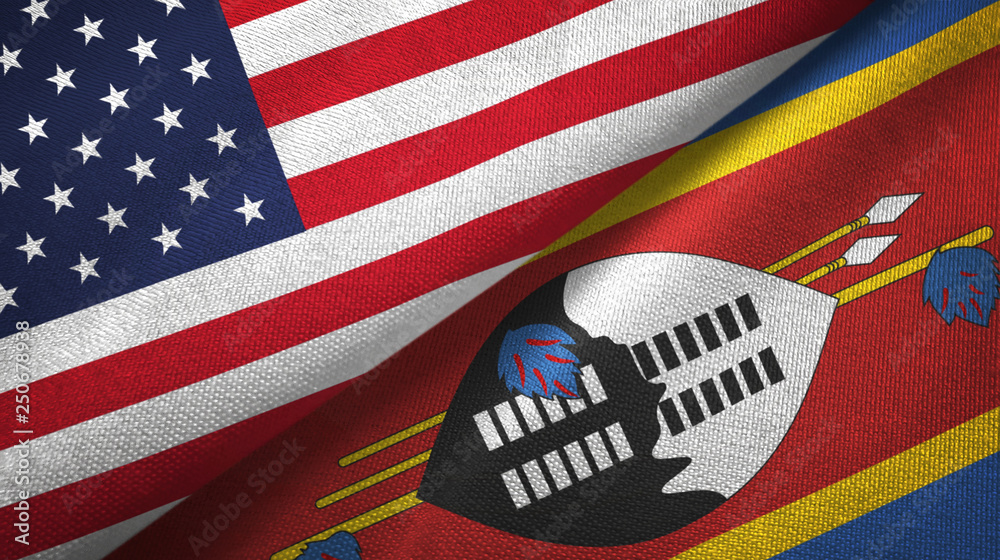 Tableau sur toile United States and Eswatini Swaziland two flags textile cloth