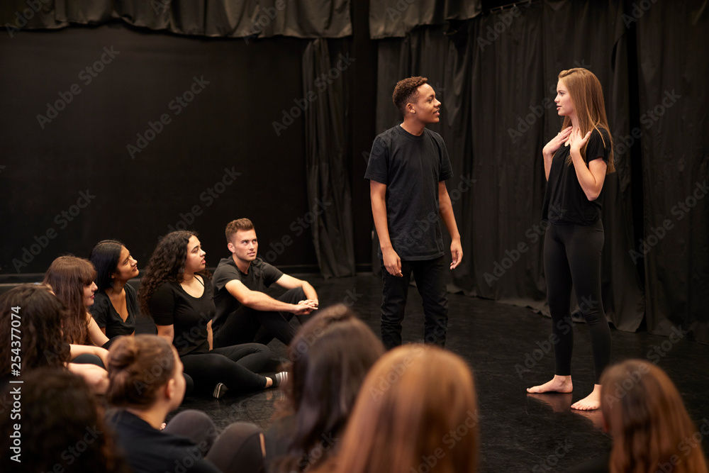 Tableau sur toile Male And Female Drama Students At Performing Arts School In Studio Improvisation