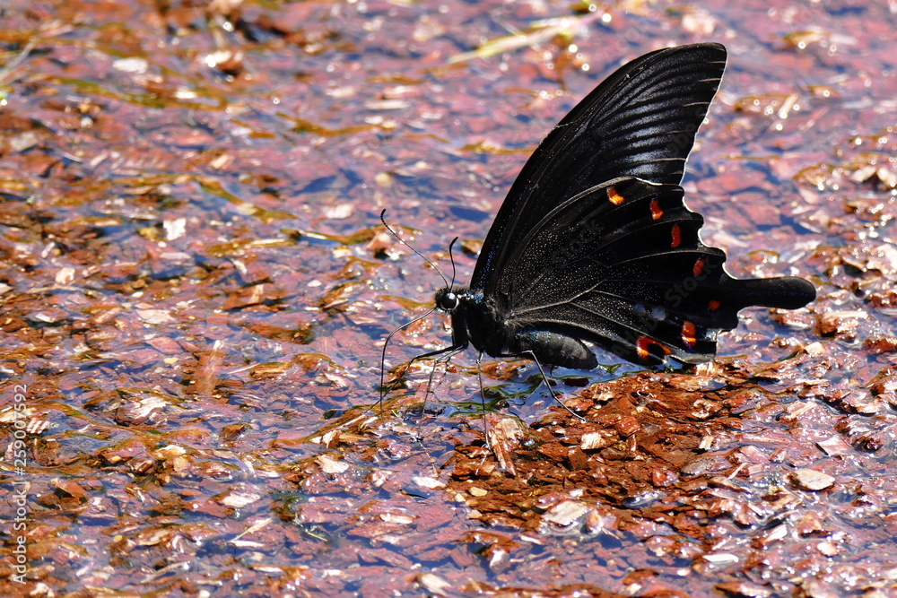 Tableau sur toile Black swallowtail butterfly on a street in Ebino kogen, Kyushu, Japan