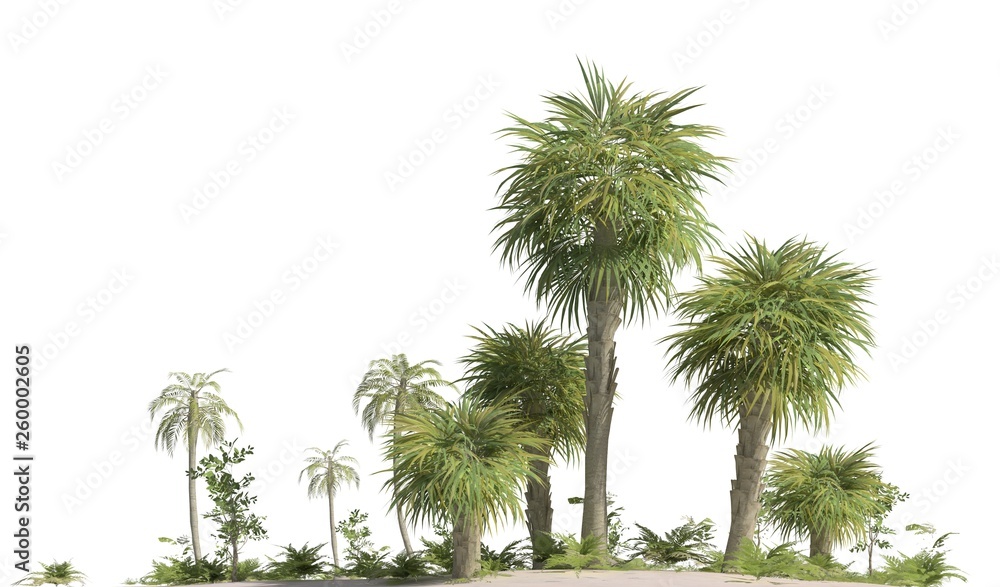 Tableau sur toile Trees of the mesozoic era isolated on white background 3D illustration