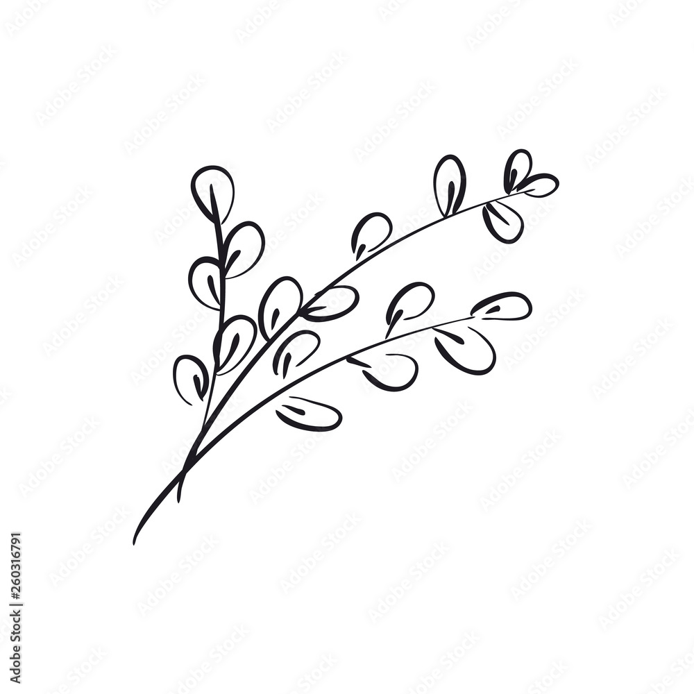 Tableau sur toile Willow catkins branch hand drawn vector illustration