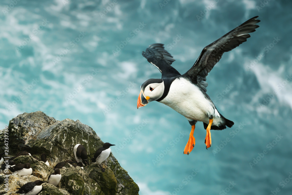 Tableau sur toile Close up of Atlantic puffin in flight
