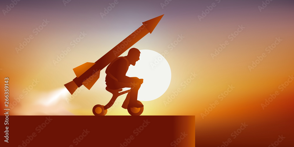 Tableau sur toile Concept de la volonté inaltérable avec un homme motivé qui se lance en direction