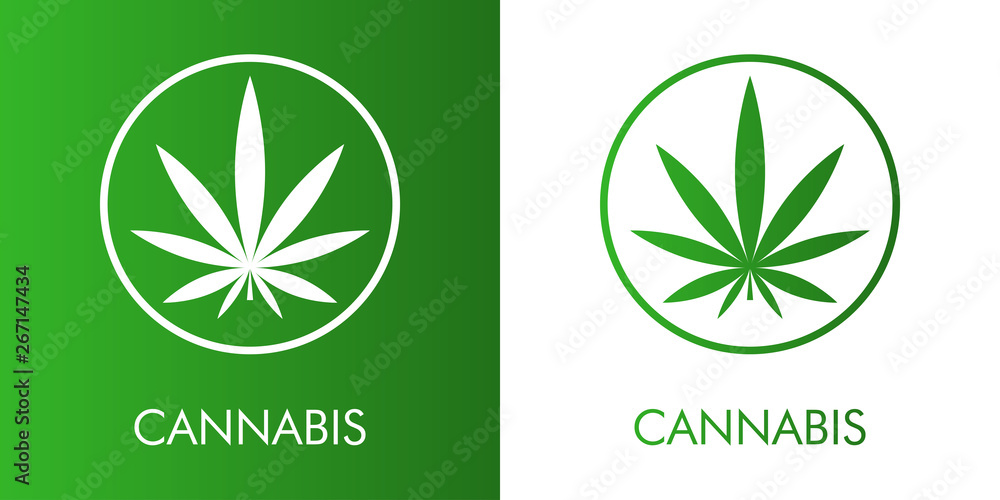 Tableau sur toile Logotipo abstracto con texto CANNABIS con hoja de marihuana en círculo en verde