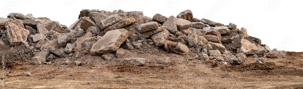 Tableau sur toile Isolated views of concrete debris piles on the ground.