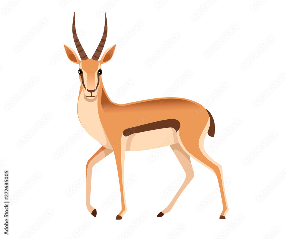 Tableau sur toile African wild black-tailed gazelle with long horns cartoon animal design flat vec
